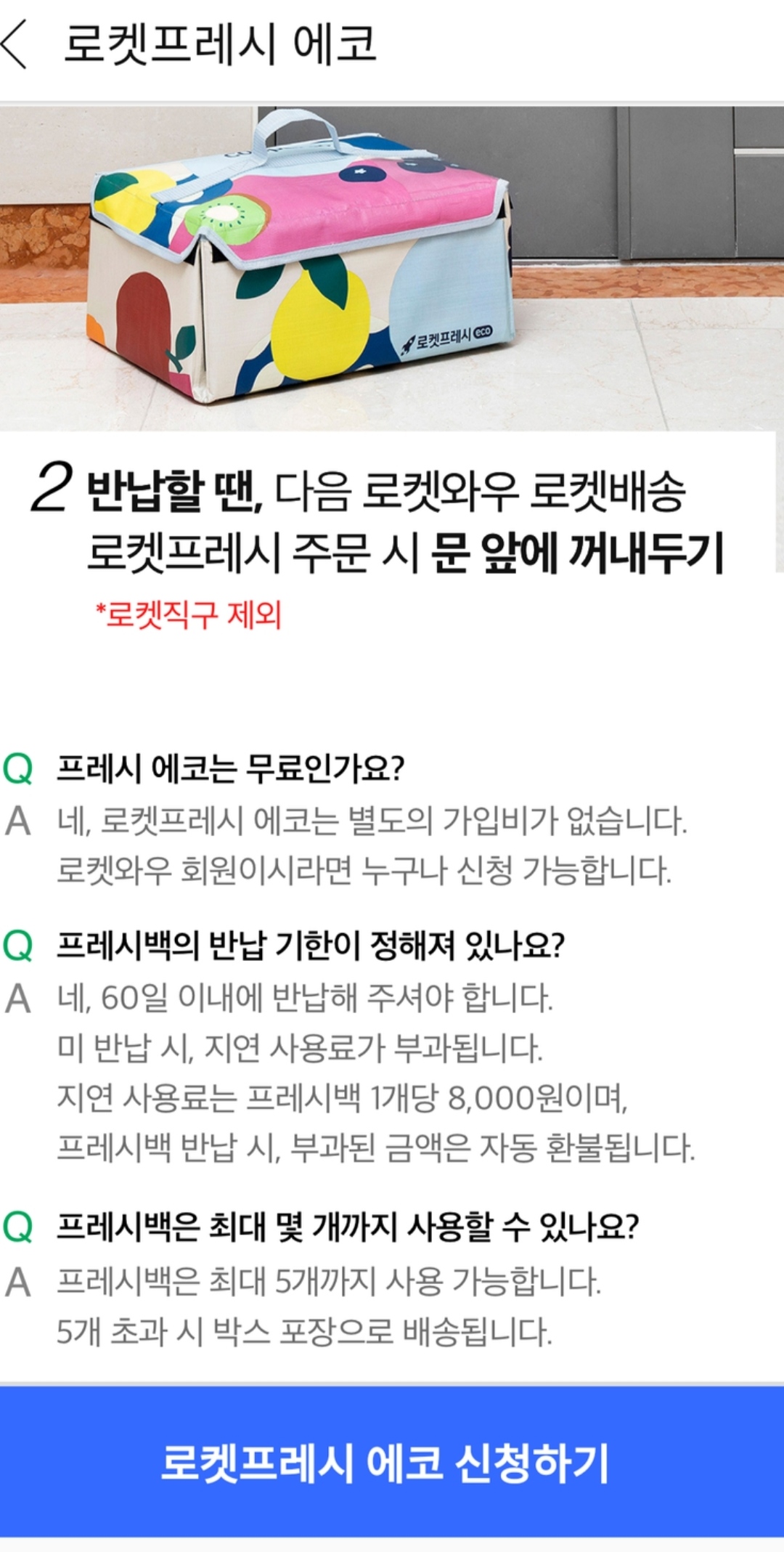 쿠팡 박스정리, 환경 걱정 없는 친환경 프레시백 배송은 신청비 없이 이용 가능 합니다.
