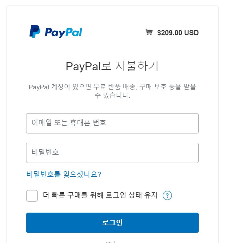 2) 페이팔 정보를 입력 후 핸드폰 인증을 하면 결제가 완료 됩니다.