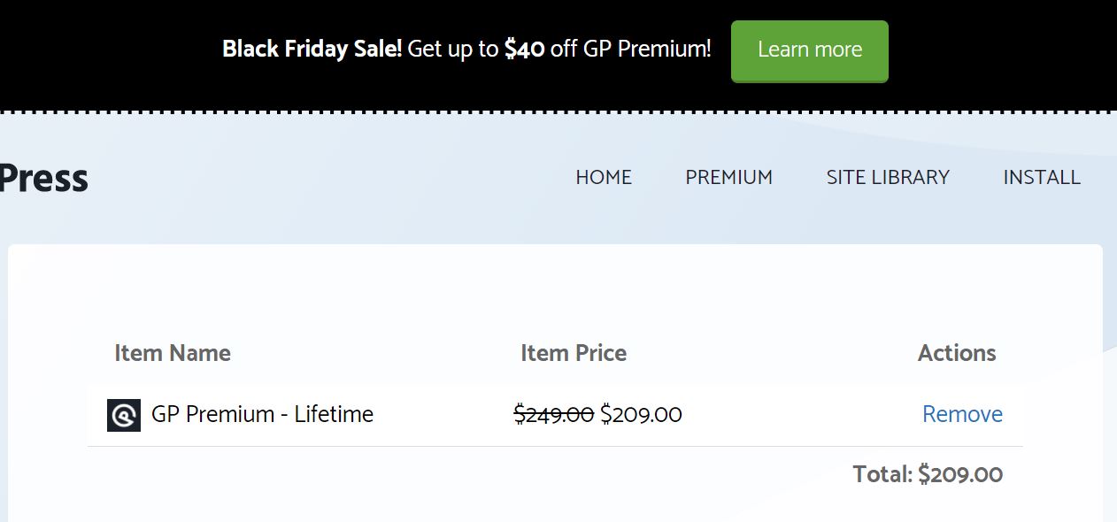 $40 할인 받아 209달러에 평생 이용가능한 GP Premium - Lifetime 상품을 구매하기로 했습니다.