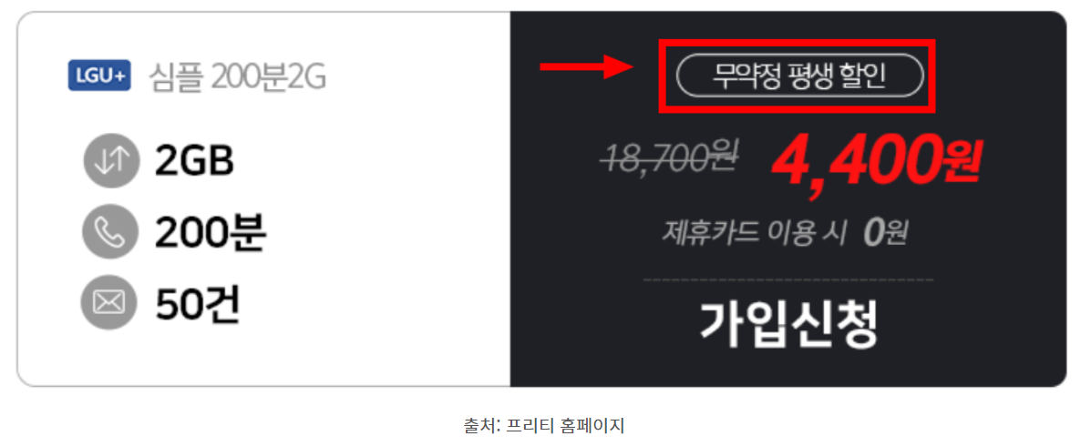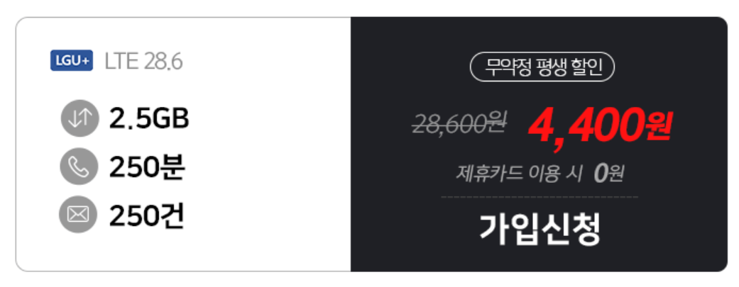 가격: 4,400원 / 무약정 평생 할인 모두 동일 합니다.