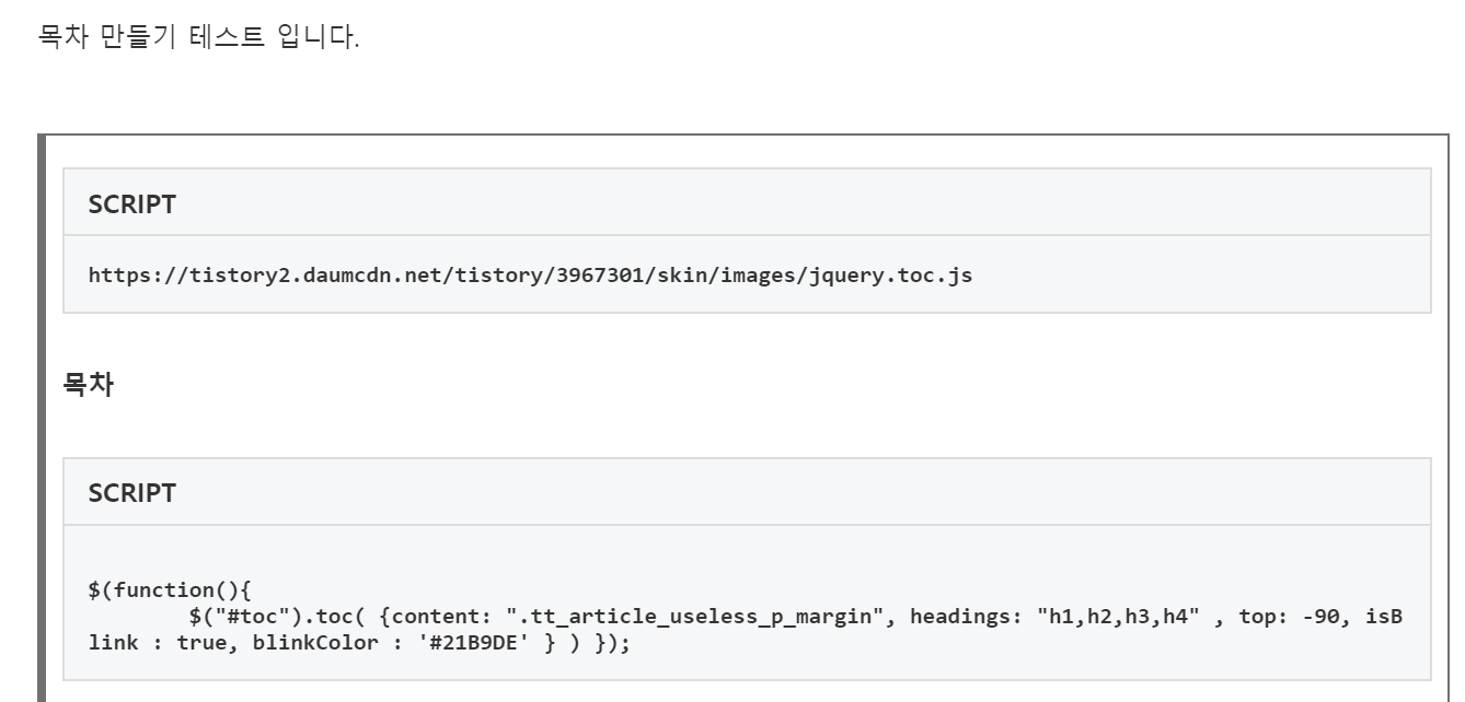 기본 티스토리 스킨에 목차 만들기를 해봤습니다.