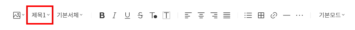 ▶ 글을 쓸 때 아래와 같이 제목 1로 지정을 하면 목차로 등록됩니다.