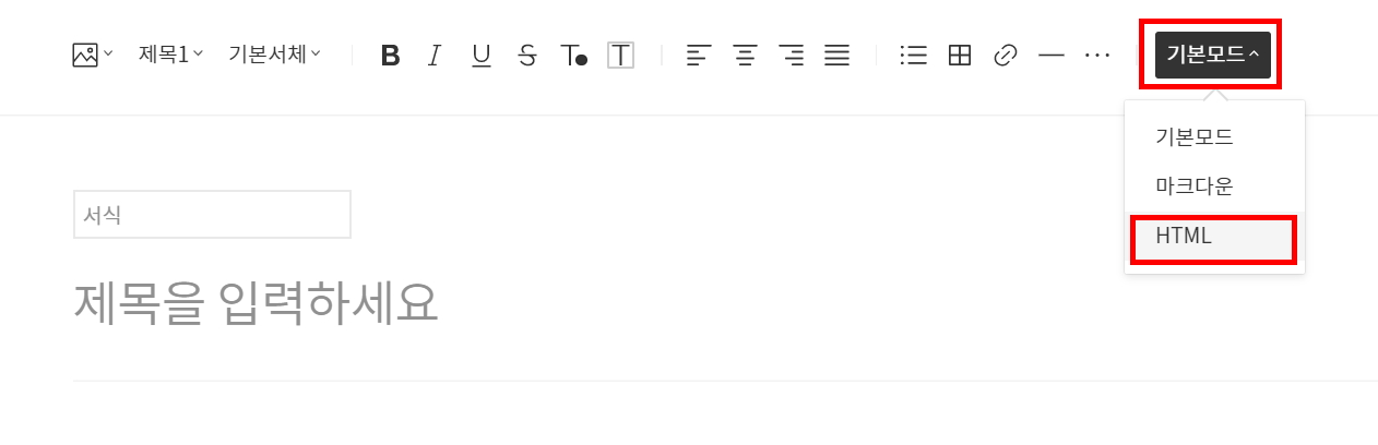 ▶ 글쓰기 모드 변경(기본 모드 -> HTML)