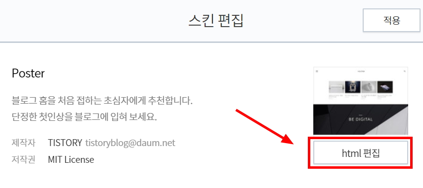 - 스킨은 유료스킨이 아닌 기본 스킨 중 포스터에서 작업했습니다.
