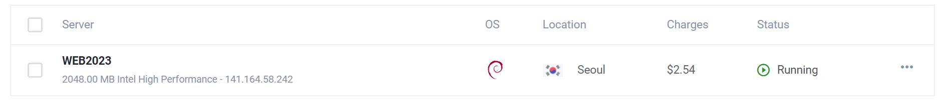 지금 전 WEB2023이란 이름으로 서버를 하나 구매 했고 현재 $2.52 만 큼 사용 했네요.