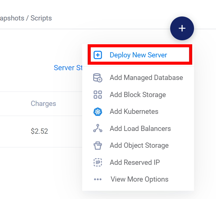 + 메뉴에 마우스를 가져가면 첫번째 메뉴가 deploy new server입니다.