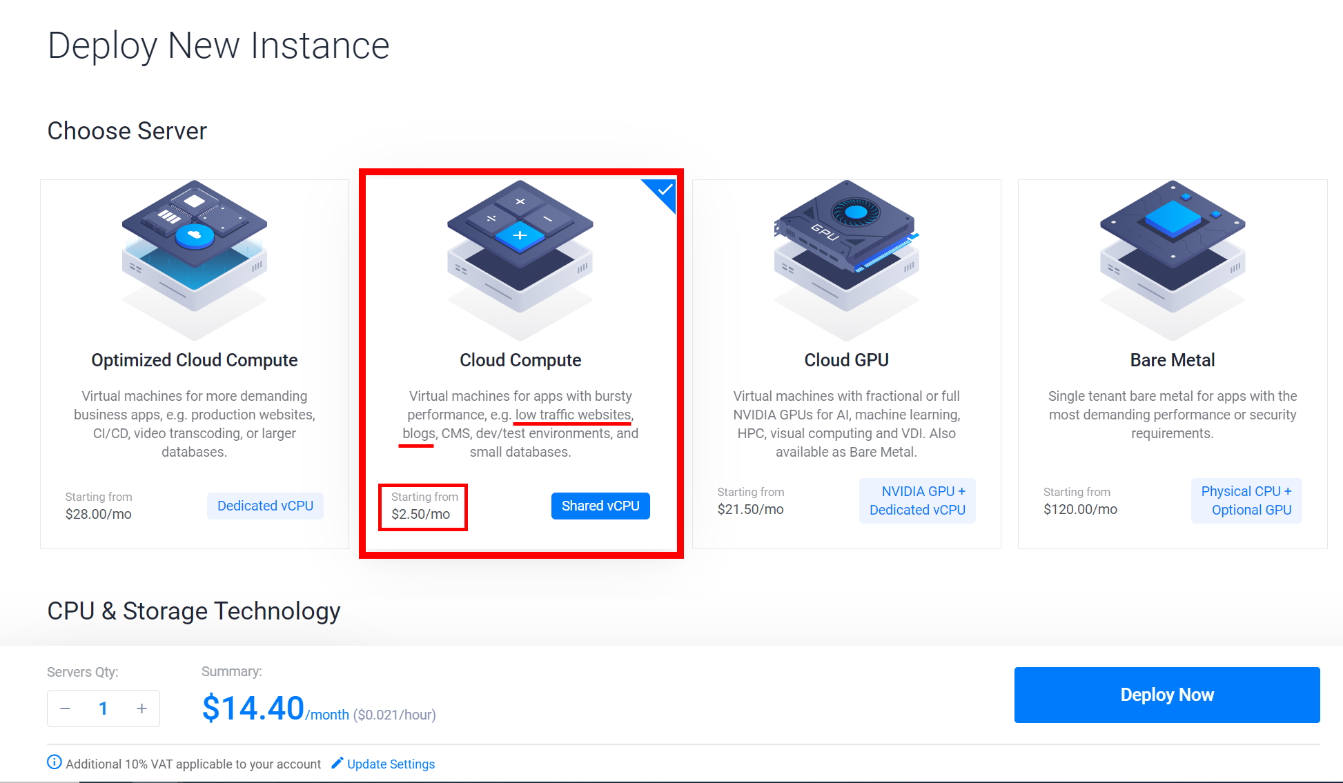 지금까지 선택한 사항으로 서버를 설치하기 위해 금액 확인 후 우측 Deploy Now를 클릭하면 약 5분 정도 후 가상서버가 설치됩니다.