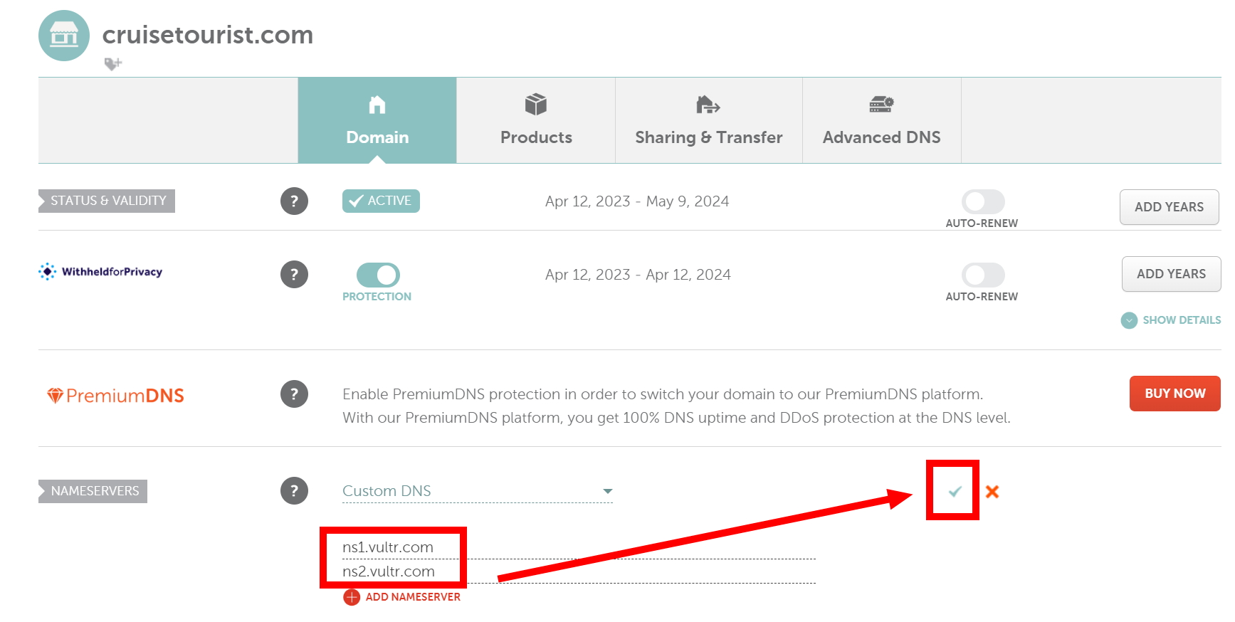 Vultr에 도메인 추가